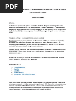 Come Costruire Un CV Appetibile Per Il Mercato Irlandese | PDF
